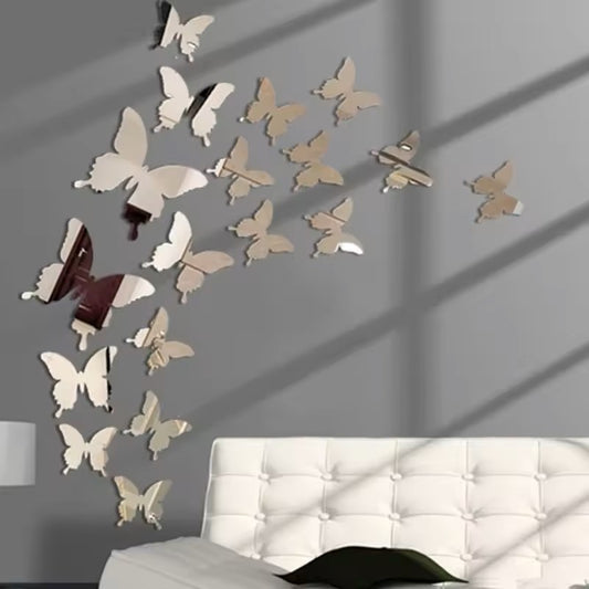 Wall Art Kids Room Decoration Sticker 12Pcs/lot 3D Butterfly Mirror Wall Sticker