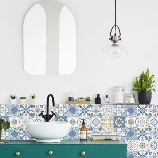 "Tile Stickers 24Pcs Mandala Retro Pattern Waterproof"