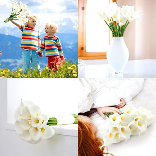 "Artificial Flowers 2/5Pcs White Calla Lily Wedding Bouquet"