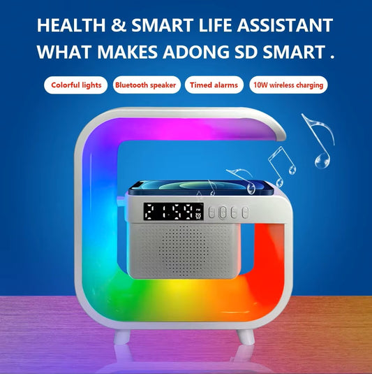 Multifunction Wireless Charger Stand Bluetooth 5.0 Speaker FM TF RGB Night Light Fast Charging Station for iPhone Samsung Xiaomi