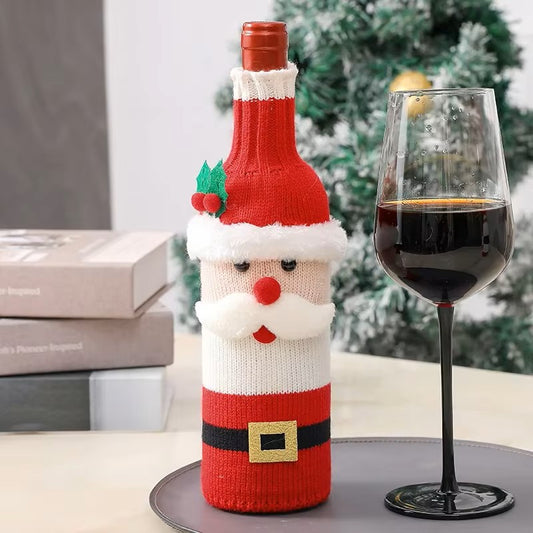 Christmas Santa Knitted Wine Bottle Case Elk Snowman Red Wine Champagne Bottle Cloth 2024 Merry Christmas Decor Happy New Year