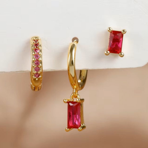 Zircon Earrings 3PCS ExqZuisite Green Zircon Earrings Set for Women Stainless Steel Flower Dangle Earring Cartilage Piercing Jewelry