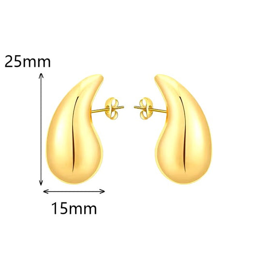 Vintage Gold Color Waterdrop Stud Earrings for Women Fashion Metal Glossy Thick Chunky Teardrop Earrings Jewelry Gifts