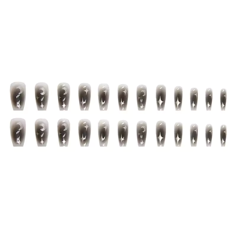 Revised sentence: "Featuring our Black Moon 24 Pcs Press-On Nails, meant 24 Pcs Press on Nails to accentuate your look with a bit of elegance and charm, you will improve your style. These fake nails, with their glossy polish and gorgeous pink gradient design, give salon-quality beauty right in your houseBlack Moon Artificial Nails.