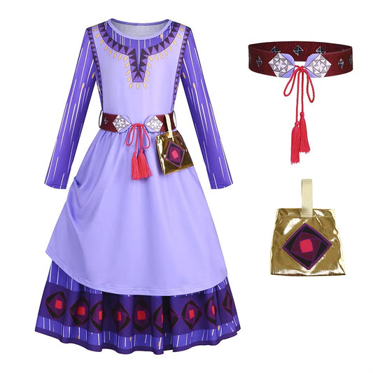 Disney Halloween Costumes for Girls Asha Cosplay Princess Dress Wish Asha Dress for Children Christmas Kids Girls Party Dresses