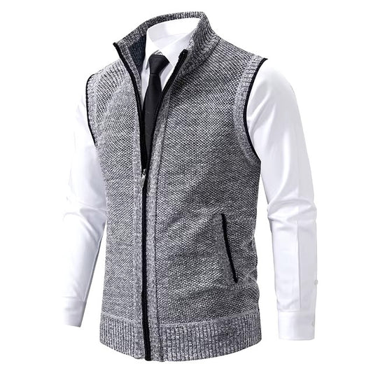 Vest Men's Knitted Sleeveless Sweater Wool Velvet Zipper Cardigan Turn-down Pullovers Turtleneck Sweatercoat Knit Waistcoat