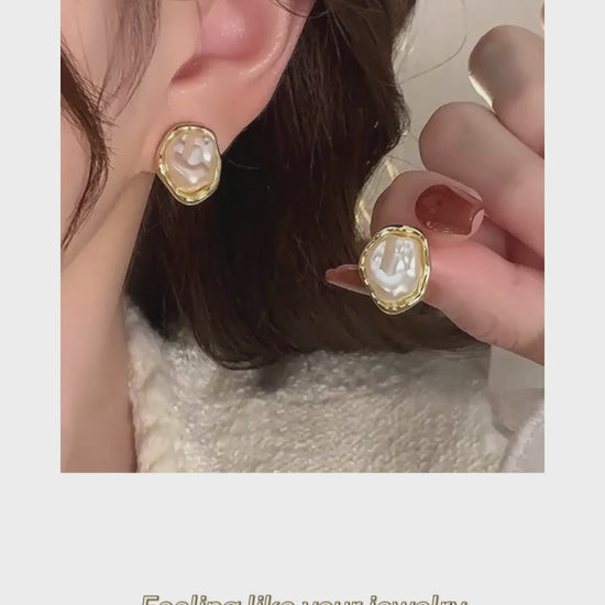 Crafted with precision, these earrings feature a geometric irregular shape that enhances their uniqueness. The round metal frame is paired beautifully with a delicate pearl accent,